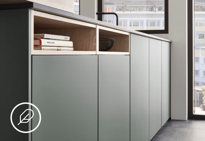 Matt kitchen surfaces are bang on trend, with an elegant and modern look that is both timeless and eye-catching. The nobilia anti-fingerprint coating means you can say goodbye once and for all to annoying finger smudges on your kitchen fronts. Learn more now about our innovative décors.