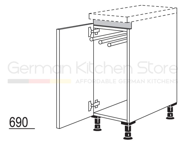 - Top and bottom shelves are 16 mm thick, exterior in carcase colour for wall units