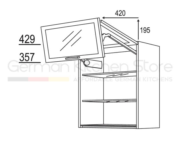 - Top and bottom shelves are 16 mm thick, exterior in carcase colour for wall units