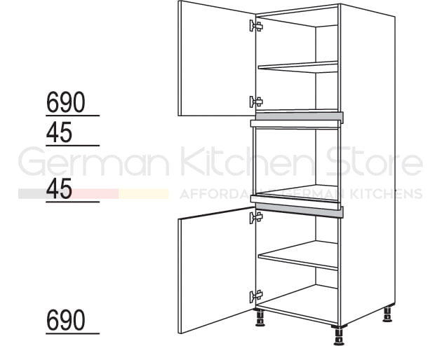 - Top and bottom shelves are 16 mm thick, exterior in carcase colour for wall units