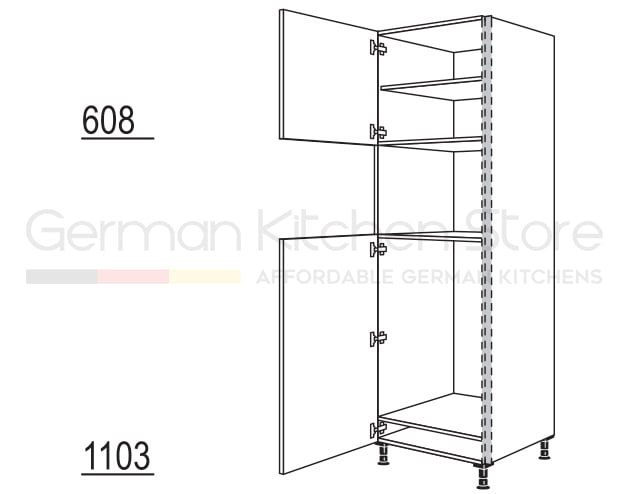 - Top and bottom shelves are 16 mm thick, exterior in carcase colour for wall units