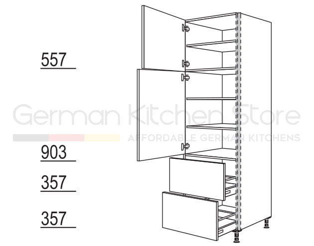 - Top and bottom shelves are 16 mm thick, exterior in carcase colour for wall units