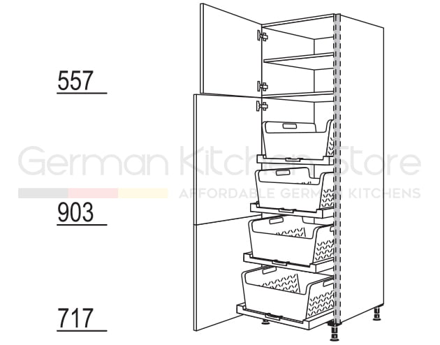 1 lug connected door, 4 tablar pull-outs, 4 laundry baskets